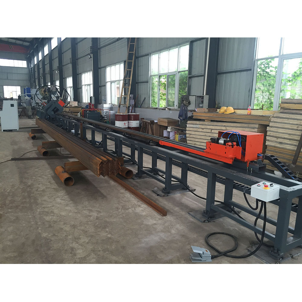 This machine is the automatic special production line used for angle steel punching, marking, and shearing mainly in the field of angle steel tower industry, electric power fittings, structure storage facilities, and steel structure construction industries, etc.
