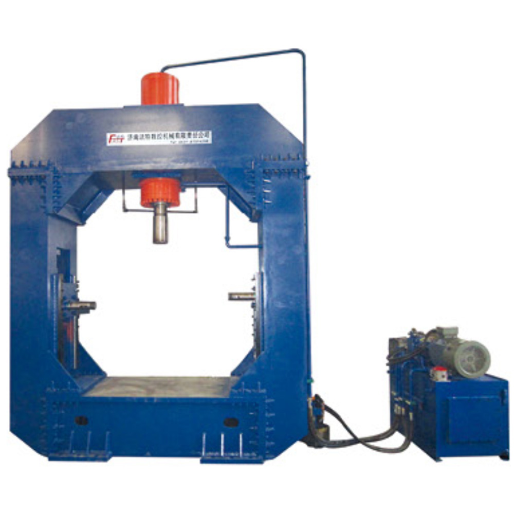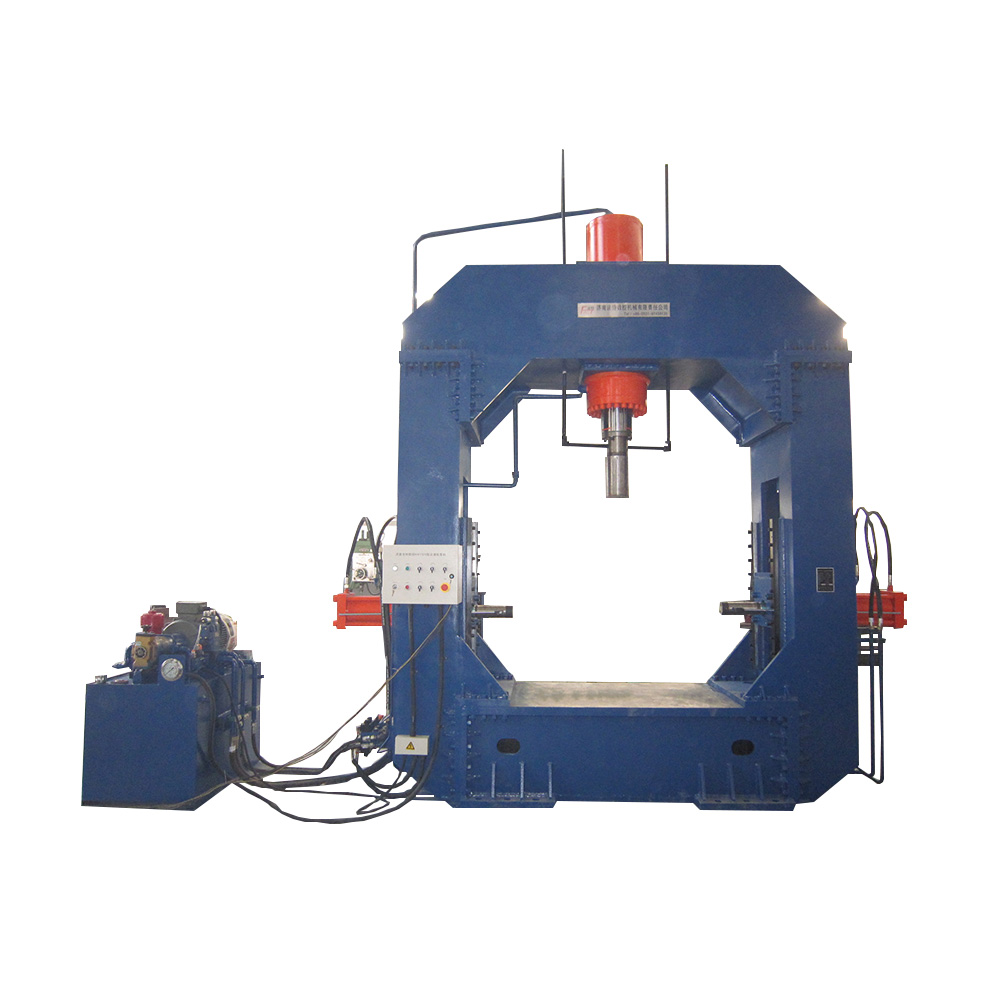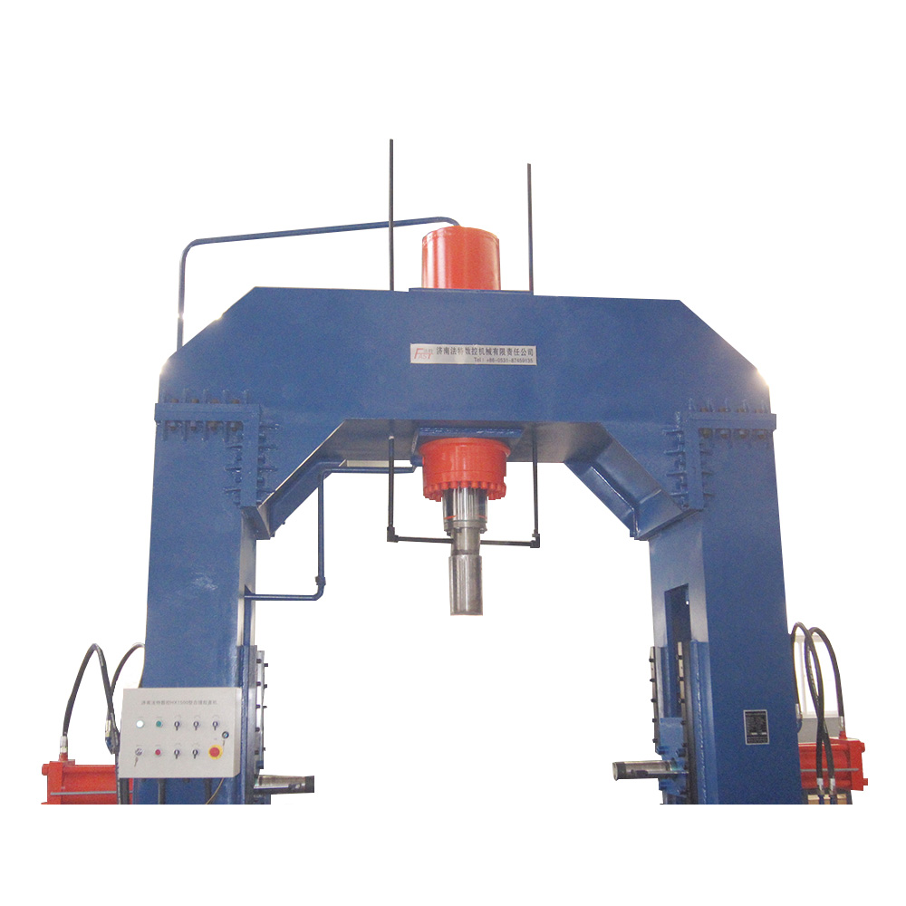 設(shè)備由龍門式液壓機(jī)、液壓站、控制柜、電動(dòng)托架、托架導(dǎo)軌等部分組成。