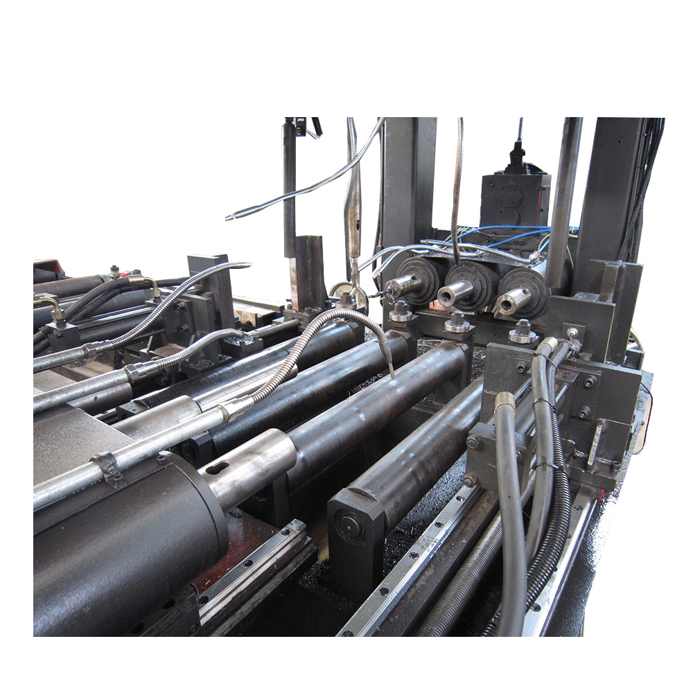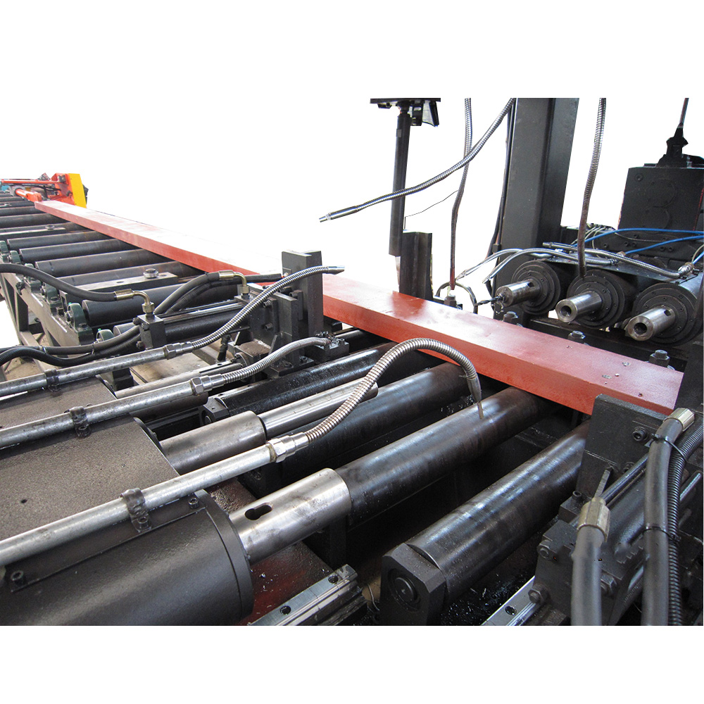 本機(jī)床主要用于H型鋼、槽鋼和箱型梁的鉆孔加工,廣泛用于立體車庫(kù)、鋼結(jié)構(gòu)建筑、橋梁、塔桅和網(wǎng)架等行業(yè)。4軸數(shù)控型鋼三維鉆床采用四個(gè)伺服電機(jī)實(shí)現(xiàn)2個(gè)垂直方向、1個(gè)水平方向和1個(gè)長(zhǎng)度的鉆孔定位。3個(gè)鉆孔面上,每個(gè)面有3個(gè)鉆孔主軸,每個(gè)面上的3個(gè)鉆孔主軸由一臺(tái)變頻電機(jī)驅(qū)動(dòng),鉆孔主軸為自控行程鉆孔主軸,工件一次通過設(shè)備后三個(gè)面上的孔均可加工完畢,效率高,孔位精度高,是鋼結(jié)構(gòu)制造業(yè)中保證質(zhì)量的必不可少的設(shè)備。
